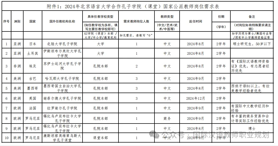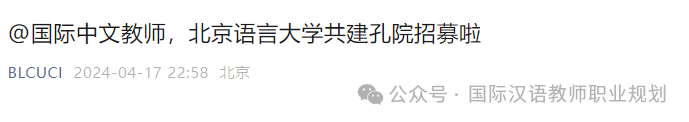 文章来源: @国际中文教师,北京语言大学共建孔院招募啦